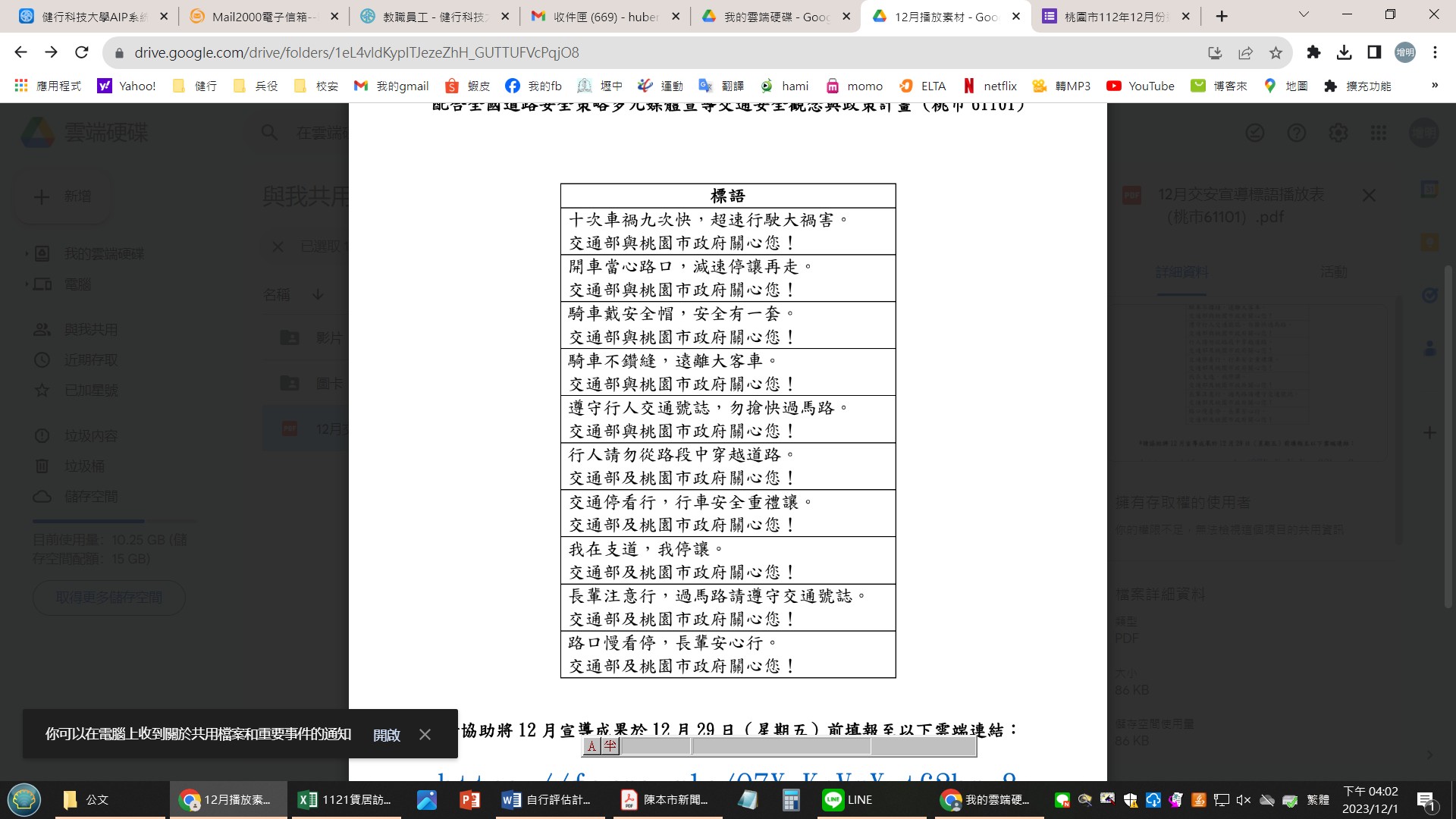 交通部112年12月份交通安全宣导「标语」暨「影像素材」